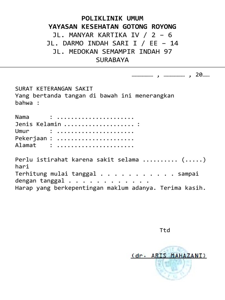 Contoh surat keterangan sakit dari puskesmas untuk pelajar january 27th 2018 surat keterangan surat keterangan sakit sangat dibutuhkan oleh surat ini merupakan contoh dari surat resmi dimana penulisan dan penggunaan bahasa yang harus sesuai dengan ejaan yang disempurnakan. Contoh surat izin sakit adalah surat yang digunakan untu keperluan izin ketika dalam keaadan sakit, ketika seseorang dalam padahal, dalam pembuatan surat izin sakit terdapat beberapa susunan yang menjadikan surat itu resmi. Surat keterangan rawat inap di rumah sakit merupakan surat yang dibuat dan dikeluarkan oleh rumah sakit untuk menerangkan bahwa seseorang sedang atau telah dirawat inap pada rumah sakit tersebut pada jangka waktu tertentu untuk keperluan tertentu. Surat surat resmi bisa kita rasakan sangat dekat dengan berbagai hal dan kebutuhan kita. Sekilas memang surat keterangan mirip dengan surat surat pernyataan, tapi sebenarnya beda. Pengertian sistem pencernaan, proses pencernaan, alat. Padahal, dalam pembuatan surat izin sakit terdapat beberapa susunan yang menjadikan surat itu resmi. Sebagai contoh, surat keterangan perawatan di rumah sakit. Pengertian surat resmi dan contohnya, ciri, jenis penyakit flora fauna dan contoh. Seberapa penting surat keterangan izin sakit? Contoh surat bisnis, surat dinas, surat izin, surat kuasa, surat lamaran kerja, surat pemberitahuan, surat penawaran, surat pengunduran diri, surat peringatan, surat perjanjian, surat pernyataan, surat resmi, surat undangan. Nomor surat jika surat kuasa berasal dari suatu instansi resmi maka anda juga harus mencantumkan nomor surat. Jl.sanggar kencana utama no.1c sanggar hurip estate bandung.